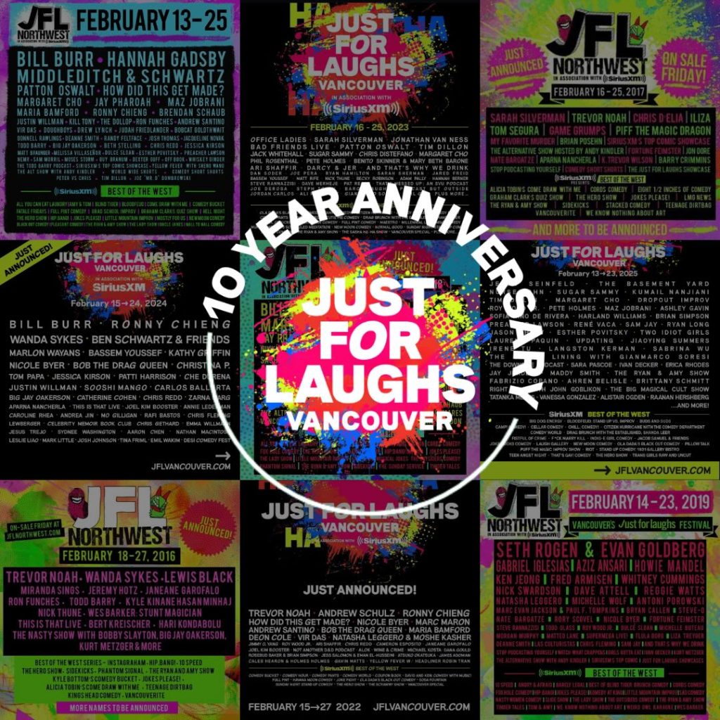 This year, Just For Laughs is celebrating a major milestone: 10 years of bringing top-tier comedy to the West Coast as Vancouver’s Just For Laughs festival! For over a decade, Just For Laughs VANCOUVER has been Western Canada’s biggest comedy festival, and they’re marking this anniversary with the kind of world-class talent and electric energy that has defined us from day one.