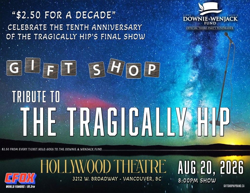 Join ‘Gift Shop – Tribute to The Tragically Hip’ as they celebrate the 10th anniversary of The Tragically Hip’s legendary final concert.
